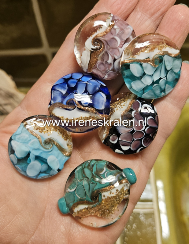 IKPR0316: Grote lentil Paars/Aventurijn/Goudvlokken, ca 31mm