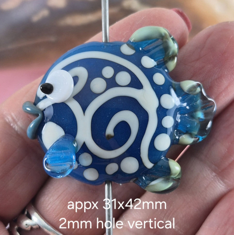 IKBL0010: ClownVis Blauw met horizontaal gat, ca 40mmDeze grote kraal is dubbelzijdig